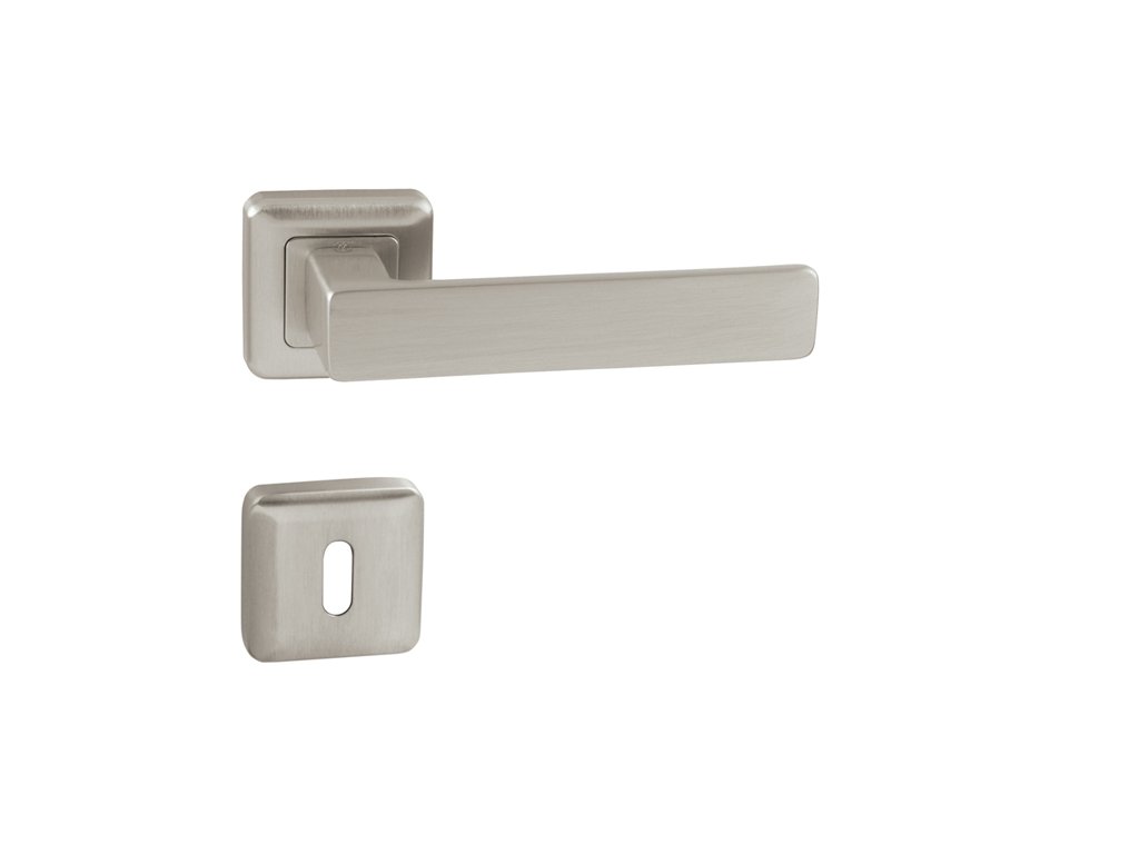 Rozetová kľučka na interiérové dvere s hranatou rozetou je vyrobená z tradičného vysoko-kvalitného materiálu – masívna mosadz lisovaná za horúca a je povrchovo upravená. Technológia využívaná pri najkvalitnejších produktoch.