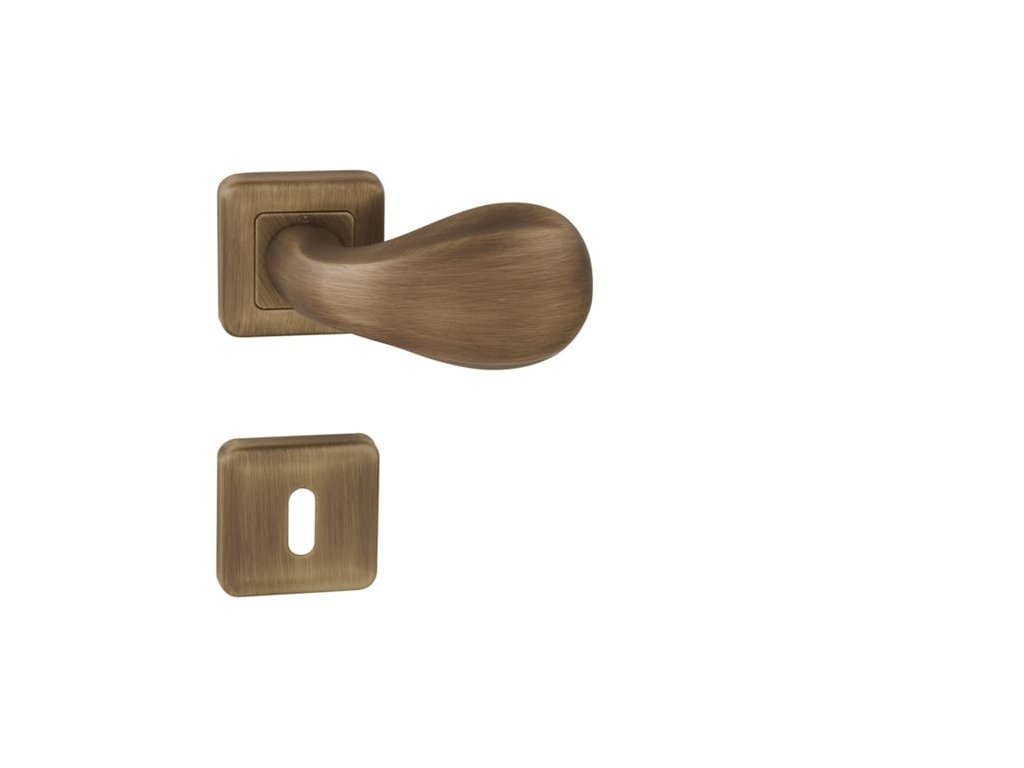 Rozetová kľučka na interiérové dvere s hranatou rozetou je vyrobená z tradičného vysoko-kvalitného materiálu – masívna mosadz lisovaná za horúca a je povrchovo upravená. Technológia využívaná pri najkvalitnejších produktoch.