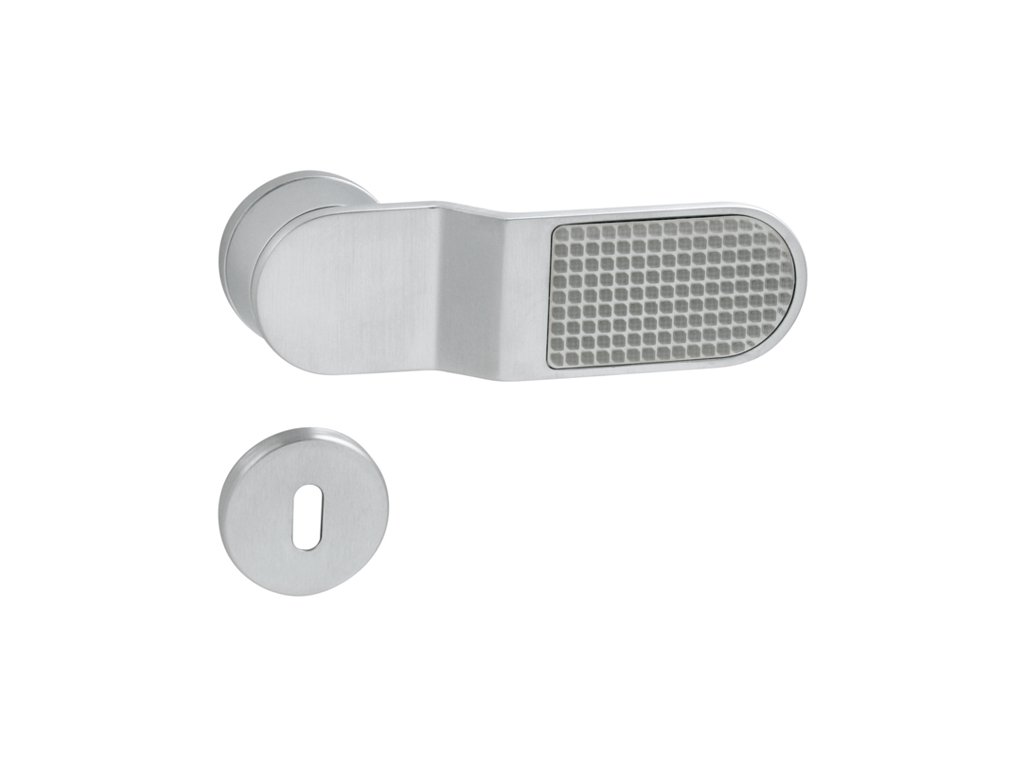 Kľučka s luminiscenčou gumou z rady Mariani Design line obsahuje vratný mechanizmus v kovovom puzdre. Luminiscenčná guma – fosfor – na nerezovej výplni, svieti v tme. Výstupky na rozete zabraňujú jej pretáčaniu a skrutky na preskrutkovanie cez celú šírku dverí zaručia pevnejšie a stabilnejšie uchytenie kovania. Výsledná konštrukcia spája funkčné aj ergonomické požiadavky, v masívnom modernom dizajne.