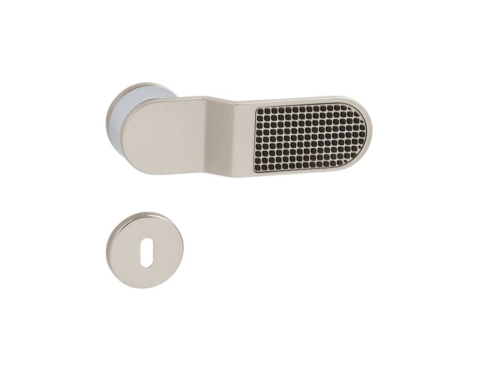 Kľučka s gumou z rady Mariani Design line obsahuje vratný mechanizmus v kovovom puzdre. Výstupky na rozete zabraňujú jej pretáčaniu a skrutky na preskrutkovanie cez celú šírku dverí zaručia pevnejšie a stabilnejšie uchytenie kovania. Výsledná konštrukcia spája funkčné aj ergonomické požiadavky, v masívnom modernom dizajne.