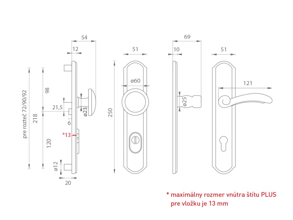 Maximálny rozmer vnútra štítu PLUS pre vložku je 13 mm.