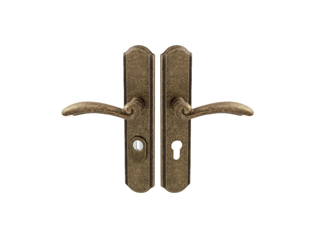 Štítová kľučka na vchodové a bezpečnostné dvere so spevneným rustikálnym štítom s prekrytím cylindrickej vložky je vyrobená z materiálov vysokej kvality – mosadz a je povrchovo upravená. Rustikálny štít má rozmery 51 mm x 250 mm a hrúbku 12 mm.