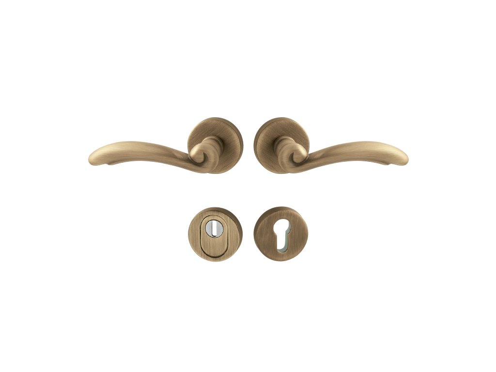 Rozetová kľučka na vchodové a bezpečnostné dvere so spevnenou okrúhlou rozetou s prekrytím cylindrickej vložky je vyrobená z materiálov vysokej kvality – mosadz a je povrchovo upravená. Okrúhla rozeta má priemer 52 mm a hrúbku 11 mm.