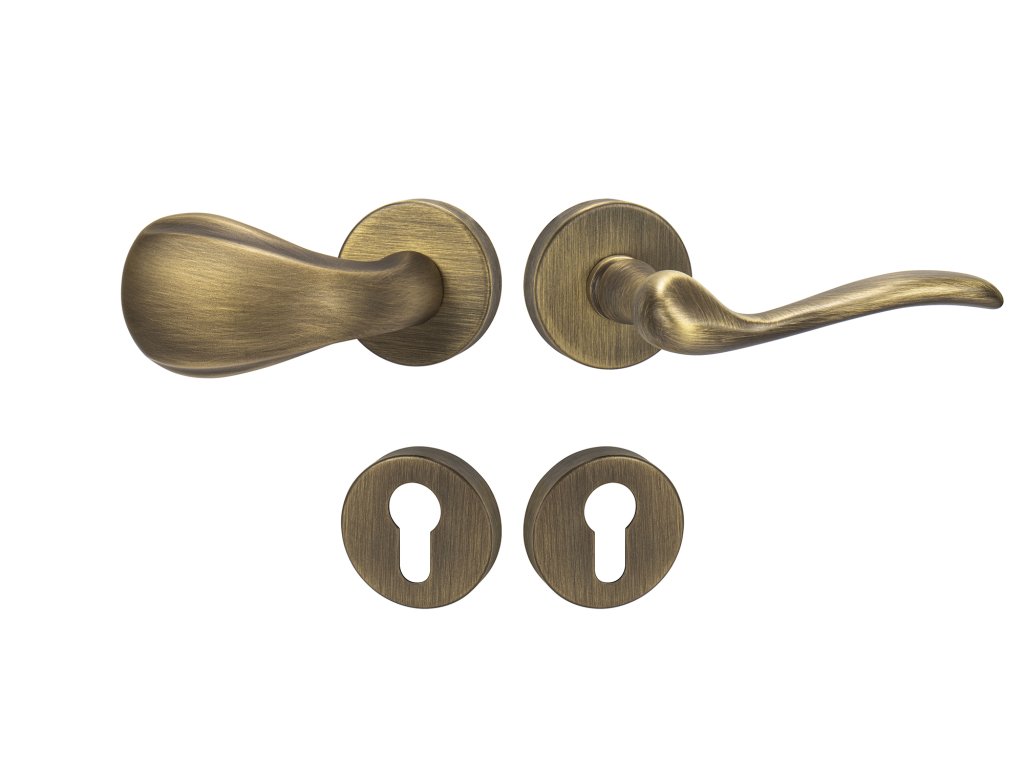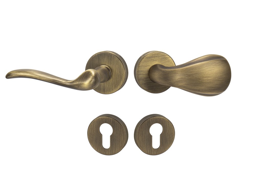 Rozetová kľučka na vchodové a bezpečnostné dvere so spevnenou okrúhlou rozetou bez prekrytia cylindrickej vložky je vyrobená z materiálov vysokej kvality – mosadz a je povrchovo upravená.