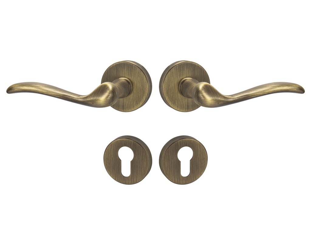 Rozetová kľučka na vchodové a bezpečnostné dvere so spevnenou okrúhlou rozetou bez prekrytia cylindrickej vložky je vyrobená z materiálov vysokej kvality – mosadz a je povrchovo upravená. Okrúhla rozeta má