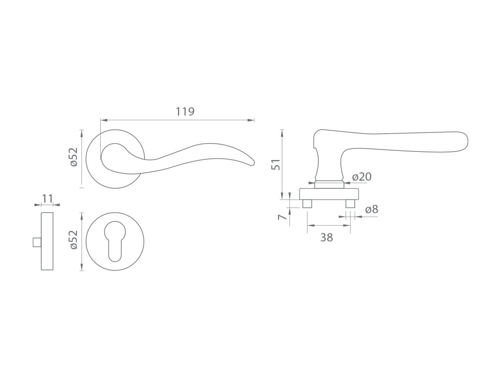 Kategória: | Kľučky na spevnených okrúhlych rozetách bez prekrytia vložky |