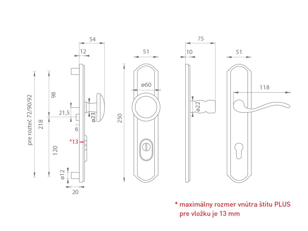 Maximálny rozmer vnútra štítu PLUS pre vložku je 13 mm.