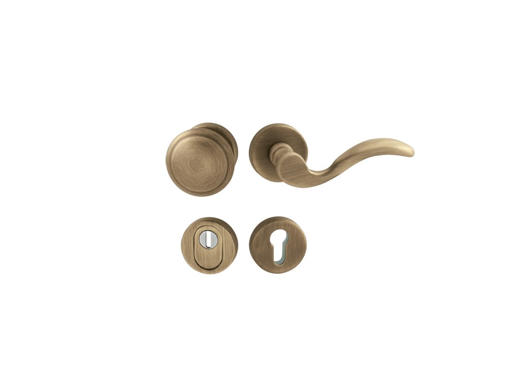 Rozetová kľučka na vchodové a bezpečnostné dvere so spevnenou okrúhlou rozetou s prekrytím cylindrickej vložky je vyrobená z materiálov vysokej kvality – mosadz a je povrchovo upravená. Okrúhla rozeta má priemer 52 mm a hrúbku 11 mm.