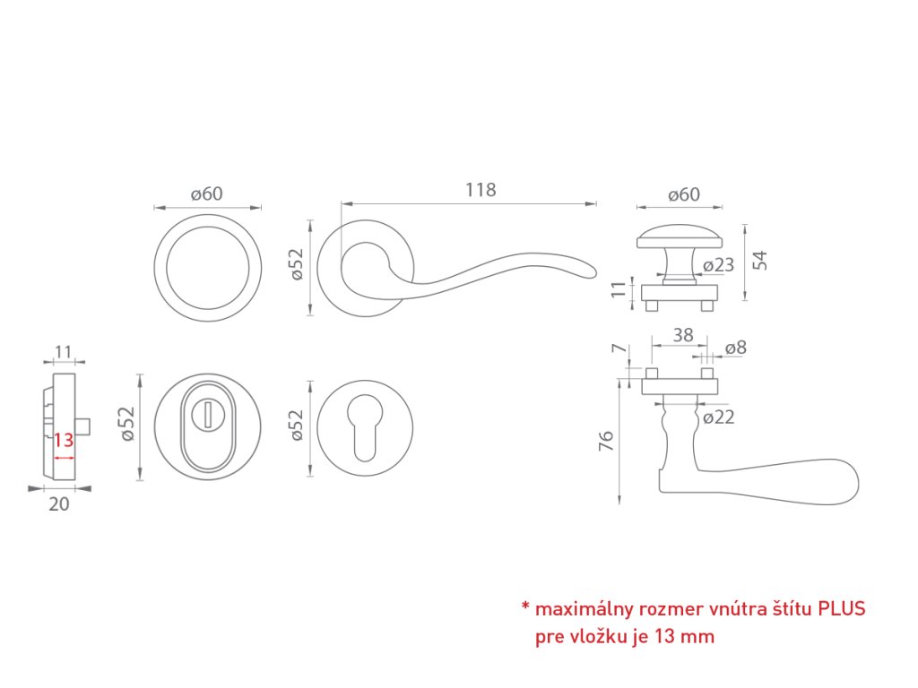 Maximálny rozmer vnútra rozety PLUS pre vložku je 13 mm.