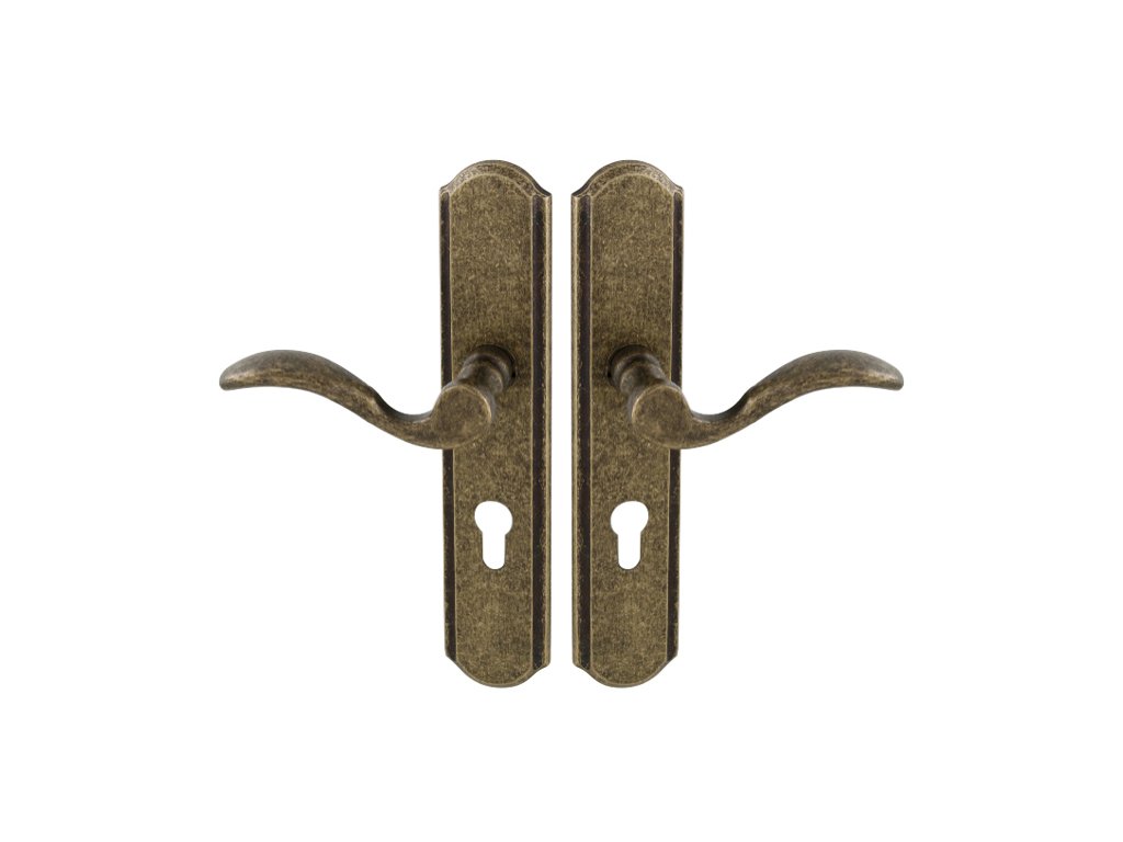 Štítová kľučka na vchodové a bezpečnostné dvere so spevneným rustikálnym štítom bez prekrytia cylindrickej vložky je vyrobená z materiálov vysokej kvality – mosadz a je povrchovo upravená. Rustikálny štít má rozmery 51 mm x 250 mm a hrúbku 12 mm.
