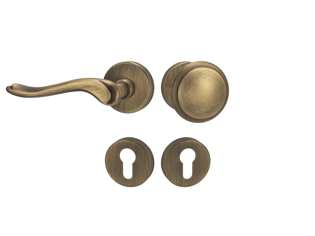 Rozetová kľučka na vchodové a bezpečnostné dvere so spevnenou okrúhlou rozetou bez prekrytia cylindrickej vložky je vyrobená z materiálov vysokej kvality – mosadz a je povrchovo upravená.