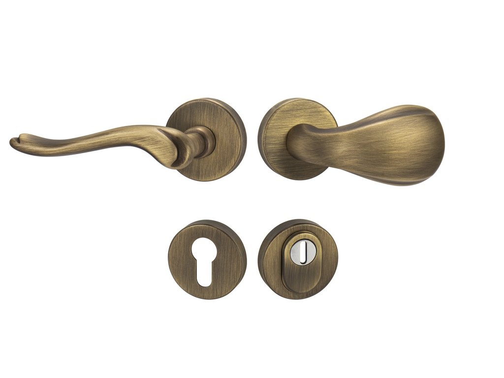 Rozetová kľučka na vchodové a bezpečnostné dvere so spevnenou okrúhlou rozetou s prekrytím cylindrickej vložky je vyrobená z materiálov vysokej kvality – mosadz a je povrchovo upravená.
