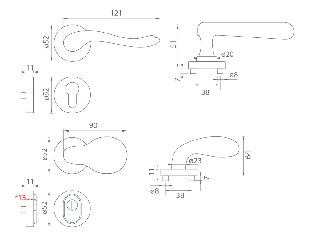 Pri kľučkách s madlom je potrebné uviesť, či ide o kľučku pravú (označujeme Re) alebo ľavú (označujeme Li).