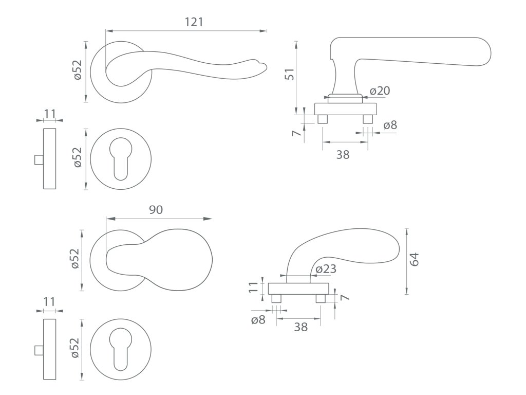 Prevedenie: madlo/kľučka s otvorom pre cylindrickú vložku (PZ). V ponuke nájdete aj prevedenie guľa/kľučka a kľučka/kľučka.