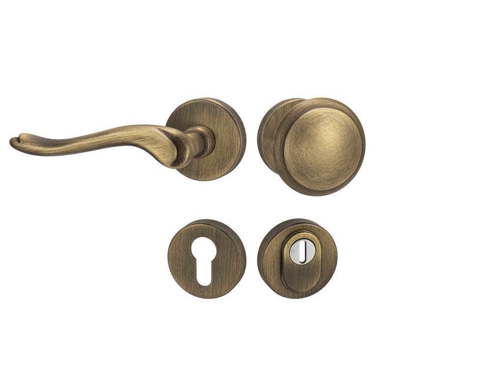 Rozetová kľučka na vchodové a bezpečnostné dvere so spevnenou okrúhlou rozetou s prekrytím cylindrickej vložky je vyrobená z materiálov vysokej kvality – mosadz a je povrchovo upravená.