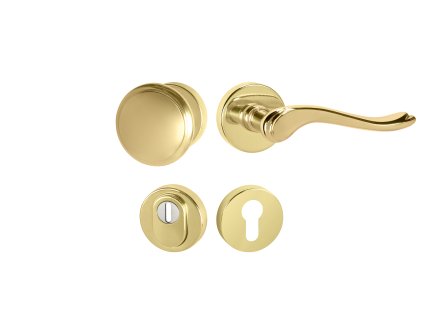 Rozetová kľučka na vchodové a bezpečnostné dvere so spevnenou okrúhlou rozetou bez prekrytia cylindrickej vložky je vyrobená z materiálov vysokej kvality – mosadz a je povrchovo upravená. Okrúhla rozeta má