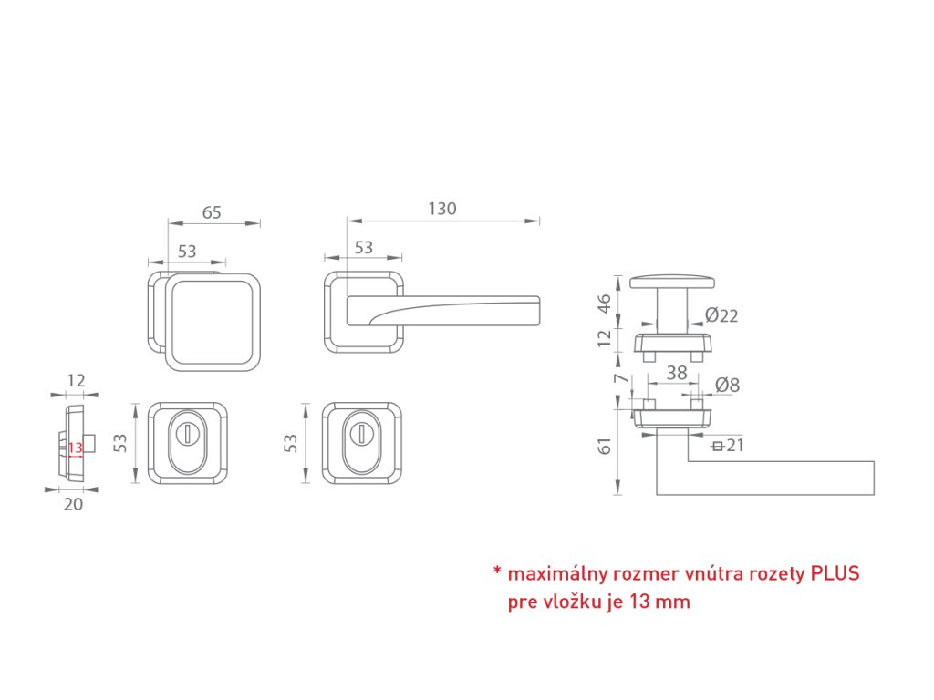 Maximálny rozmer vnútra rozety PLUS pre vložku je 13 mm.