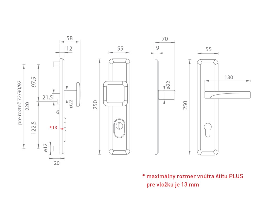 Maximálny rozmer vnútra štítu PLUS pre vložku je 13 mm.
