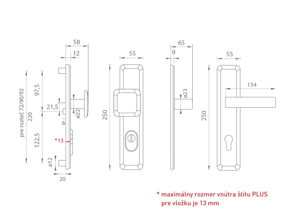 Maximálny rozmer vnútra štítu PLUS pre vložku je 13 mm.