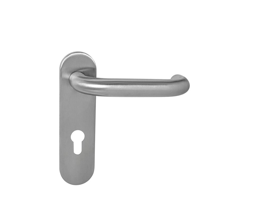 Štítová kľučka na interiérové dvere s krátkym oválnym štítom je vyrobená z vysokokvalitnej nehrdzavejúcej ocele, známej ako nerez a je povrchovo upravená.