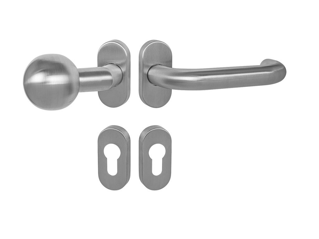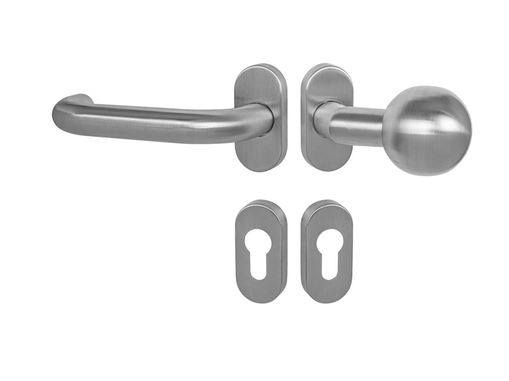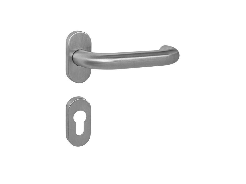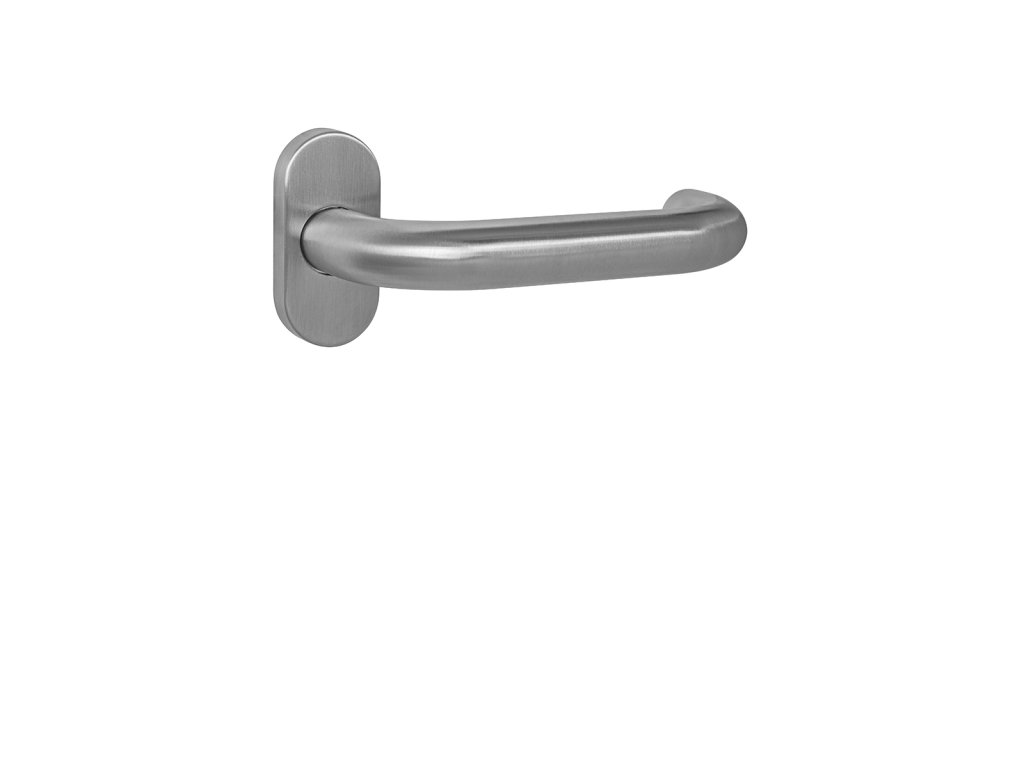 Rozetová kľučka s oválnou úzkou rozetou pre dvere s úzkym profilom (napr.: záhradné bránky a bráničky plotov) je vyrobená z vysokokvalitnej nehrdzavejúcej ocele, známej ako nerez a je povrchovo upravená. Mechanizmus kľučky obsahuje vratnú pružinu.