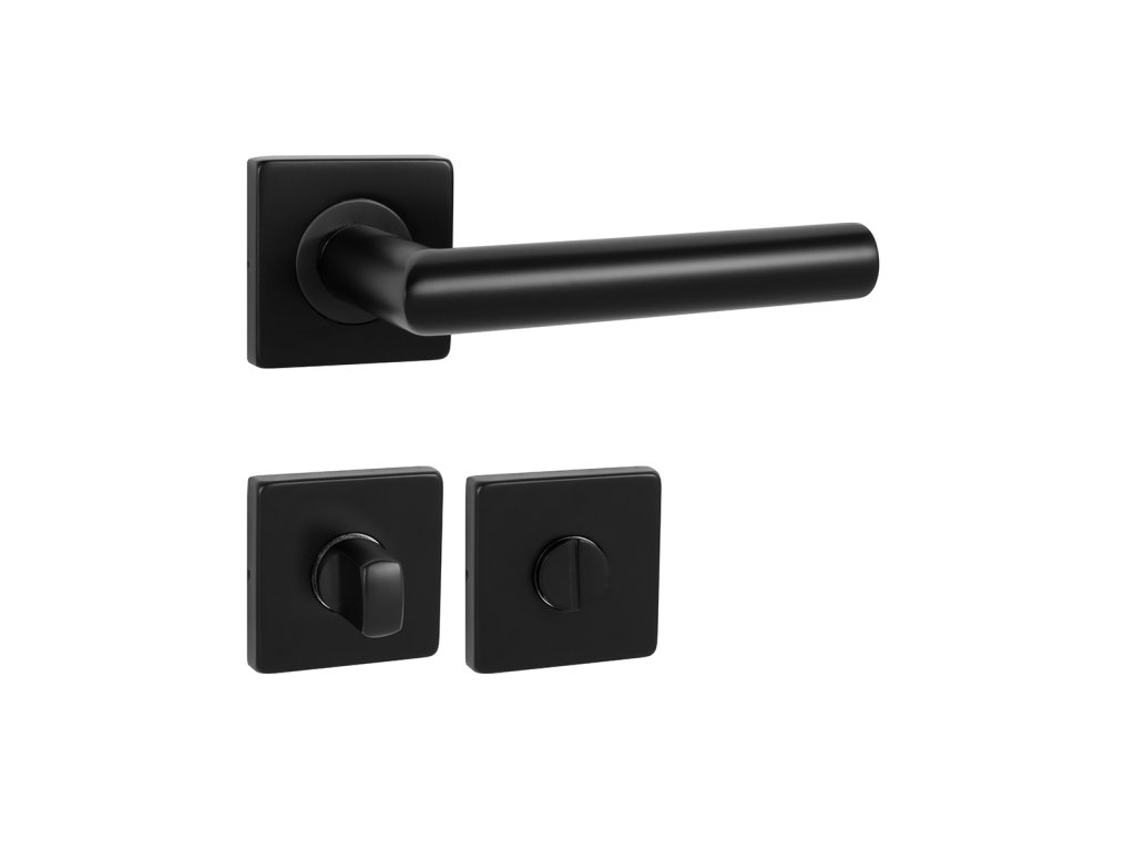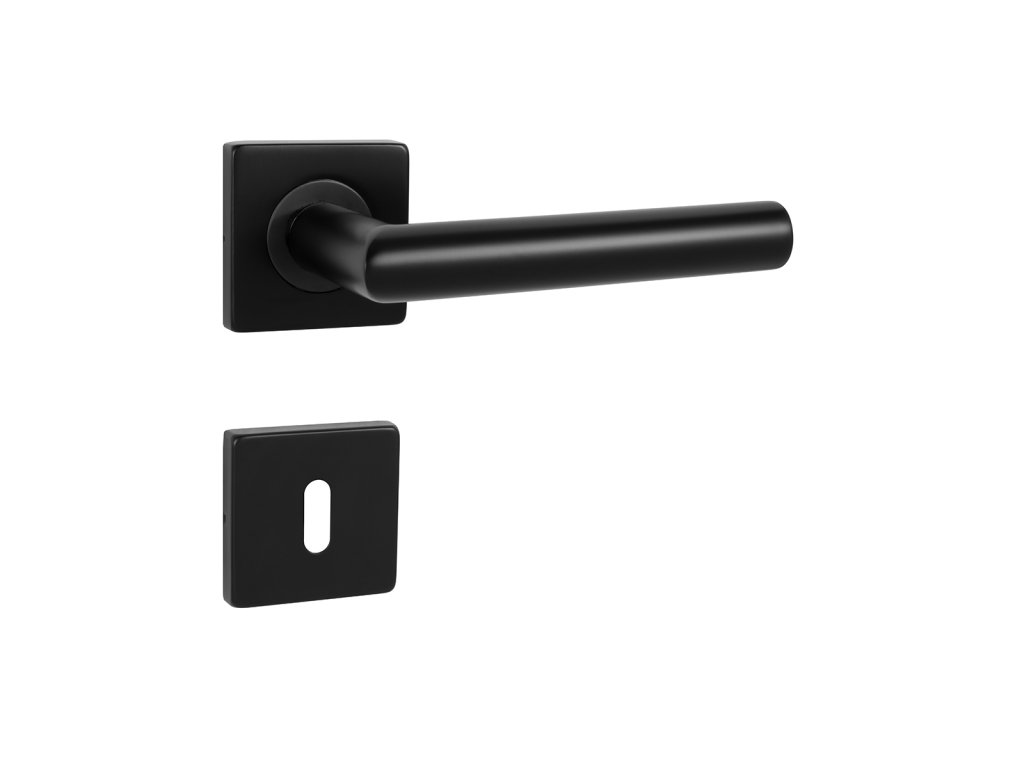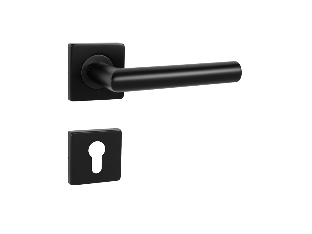 Rozetová kľučka na interiérové dvere s hranatou rozetou je vyrobená z vysokokvalitnej nehrdzavejúcej ocele, známej ako nerez a je povrchovo upravená. Rozeta má rozmery 54 mm x 54 mm a hrúbku 9 mm. Je farebne stabilná a odolná voči opotrebeniu. Kovanie je testované podľa normy ČSN EN 1906:2012 na 200 000 cyklov.