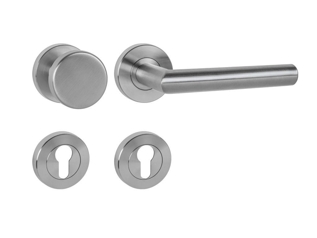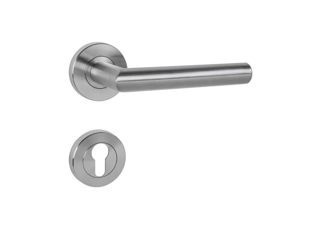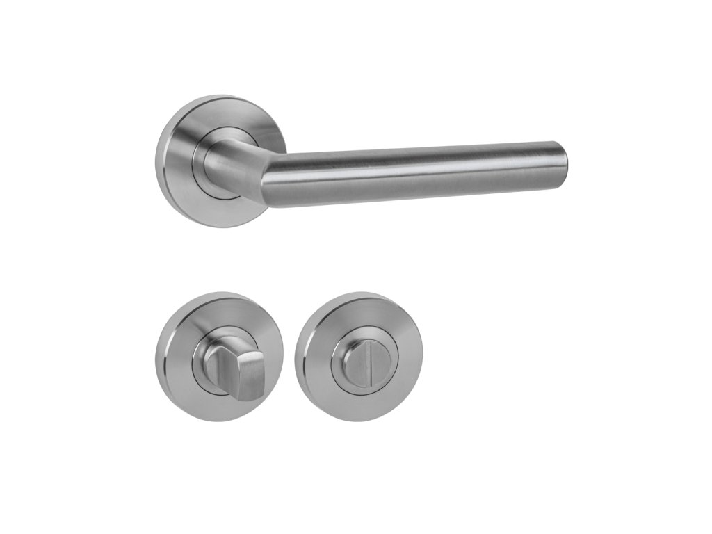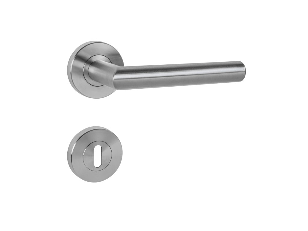 Rozetová kľučka na interiérové dvere s okrúhlou skrutkovacou rozetou predstavuje kombináciu funkčnosti a elegancie pre prostredia s vysokou záťažou. Je vyrobená z vysokokvalitnej nehrdzavejúcej ocele, známej ako nerez a je povrchovo upravená. Povrch je nanesený vysoko kvalitnou technológiou pokovovania, na ktorú sa vzťahuje predĺžená 10-ročná záruka. Krycie rozety sú upevnené vnútorným závitom bez viditeľných spojov, ktorý zaručuje extrémne pevný spoj a hladké priľnutie k povrchu dverí. Ergonomický úchop so zrezanou hranou poskytuje pohodlie pri každom dotyku. Kľučka je vďaka svojej robustnej konštrukcii obzvlášť vhodná pre prostredia s vysokou frekvenciou pohybu osôb, ako sú kancelárie, verejné budovy, nemocnice, čerpacie stanice a pod.