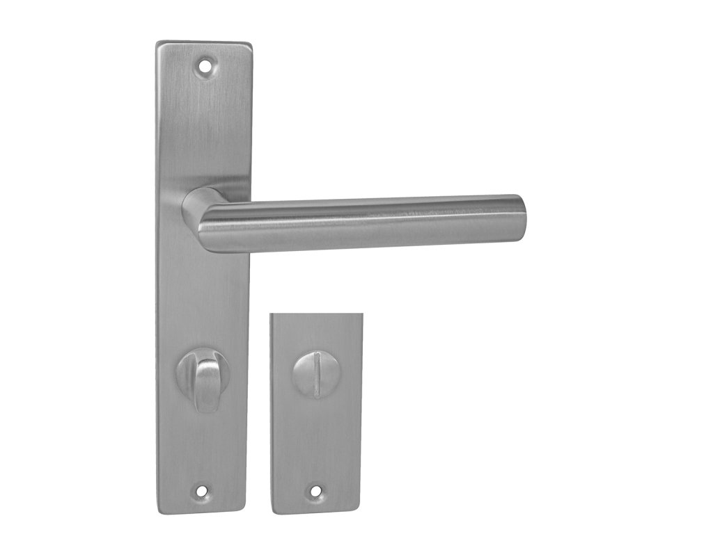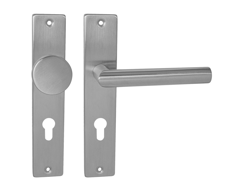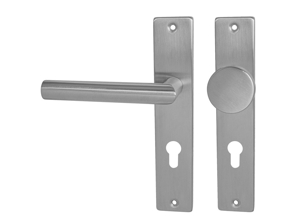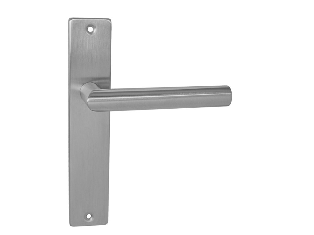 Štítová kľučka na interiérové dvere s hranatým štítom je vyrobená z vysokokvalitnej nehrdzavejúcej ocele, známej ako nerez a je povrchovo upravená.