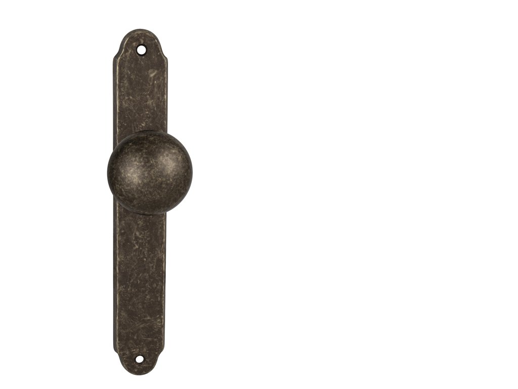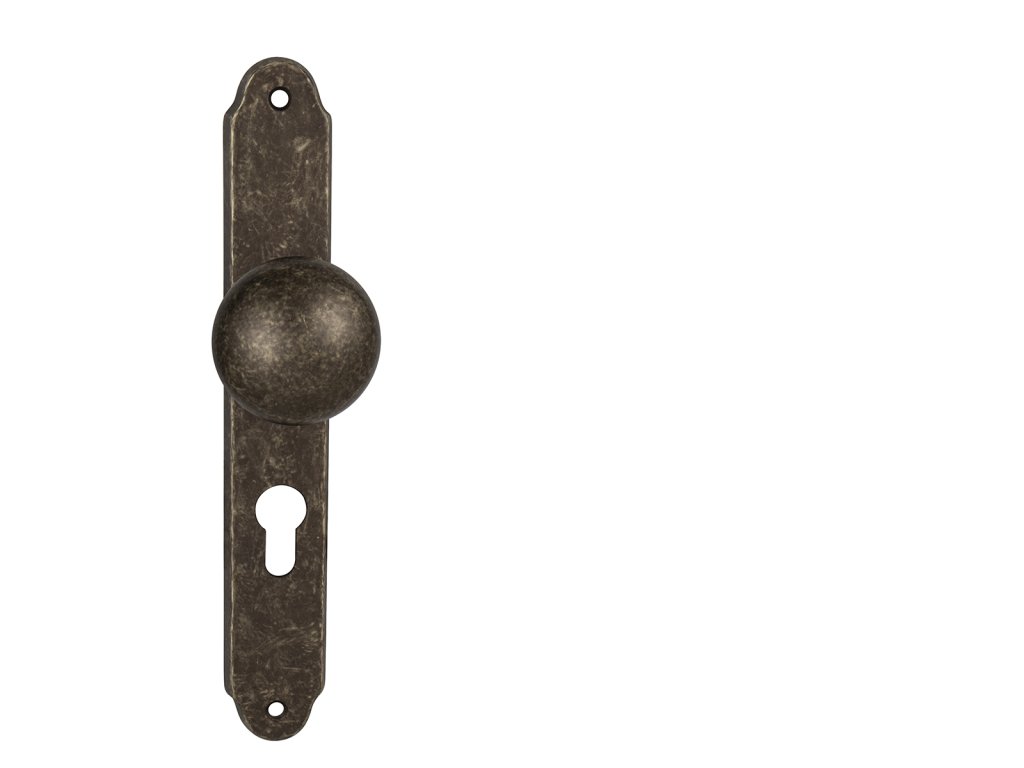 Dverová pevná priama guľa na rustikálnom štíte je vyrobená z materiálov vysokej kvality - zamak a je povrchovo upravená.
