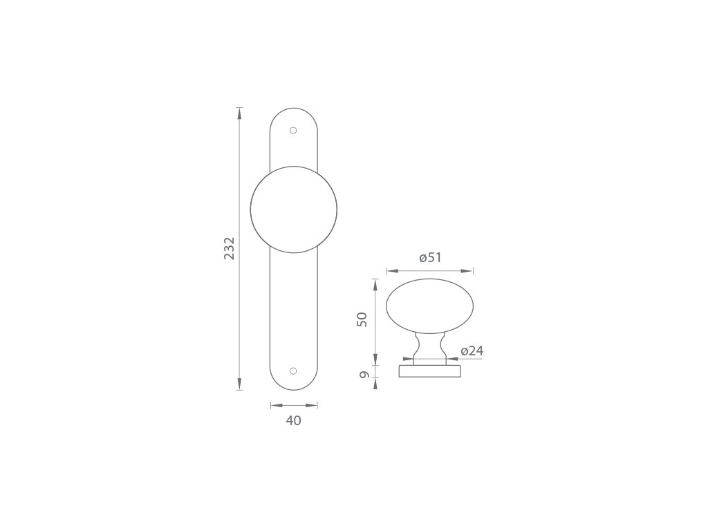 Dverová pevná priama guľa na oválnom štíte je vyrobená z materiálov vysokej kvality - mosadz/zamak - zliatina zinku a je povrchovo upravená.