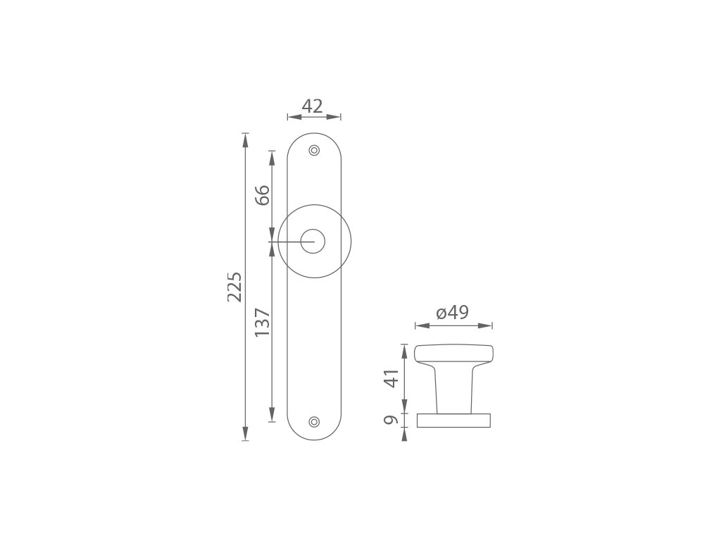 Dverová pevná priama guľa na oválnom štíte je vyrobená z vysokokvalitnej nehrdzavejúcej ocele, známej ako nerez a je povrchovo upravená. Guľa má priemer 49 mm a štít má rozmery 42 mm x 225 mm. Je to len na Vašom rozhodnutí, aký typ otvoru si vyberiete z našej širokej ponuky. V prípade, že sa neviete rozhodnúť, radi Vám poradíme a pomôžeme s výberom.