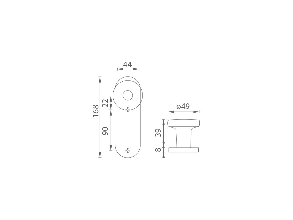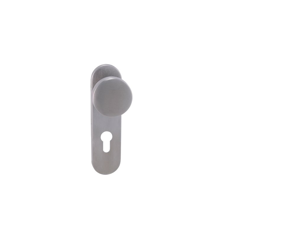 Dverová pevná priama guľa na krátkom oválnom štíte je vyrobená z vysokokvalitnej nehrdzavejúcej ocele, známej ako nerez a je povrchovo upravená. Guľa má priemer 49 mm a štít má rozmery 44 mm x 168 mm.