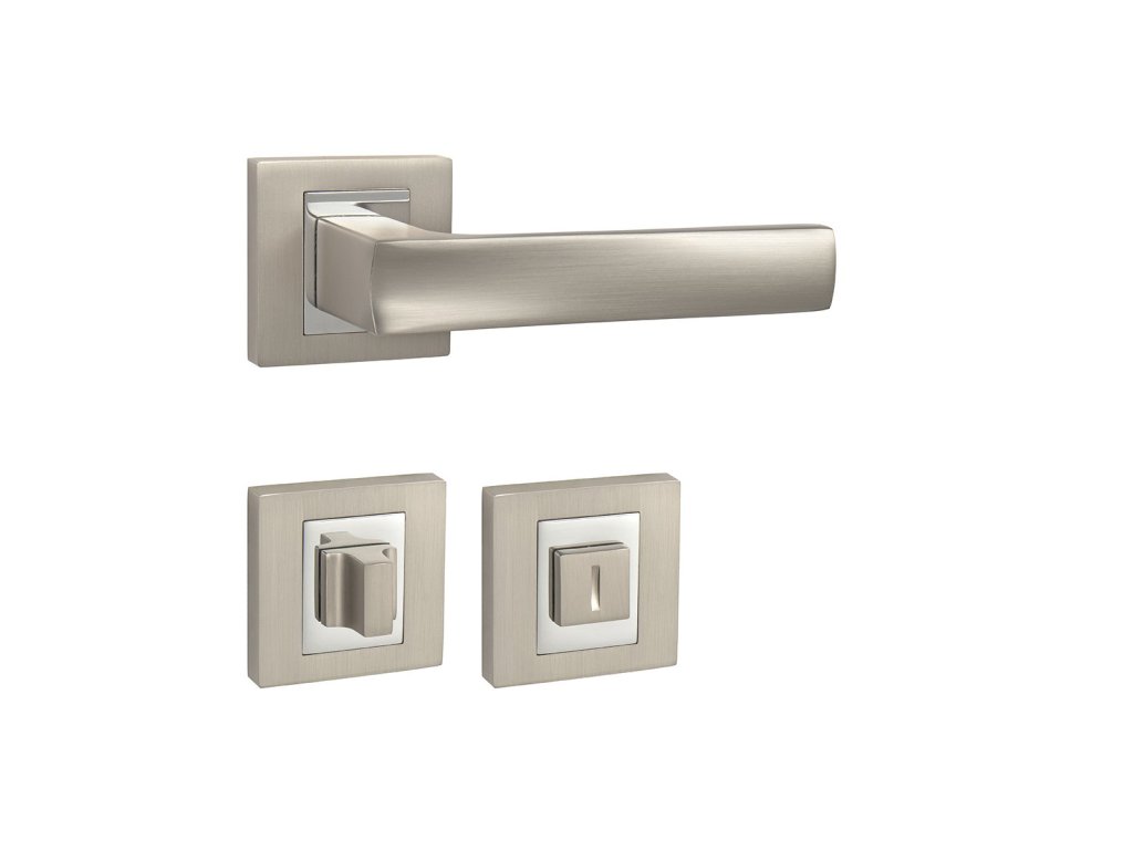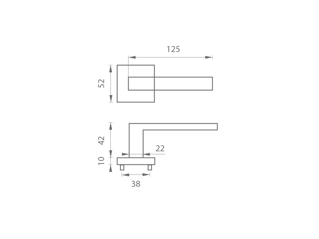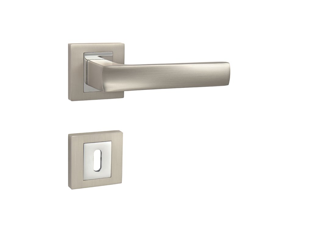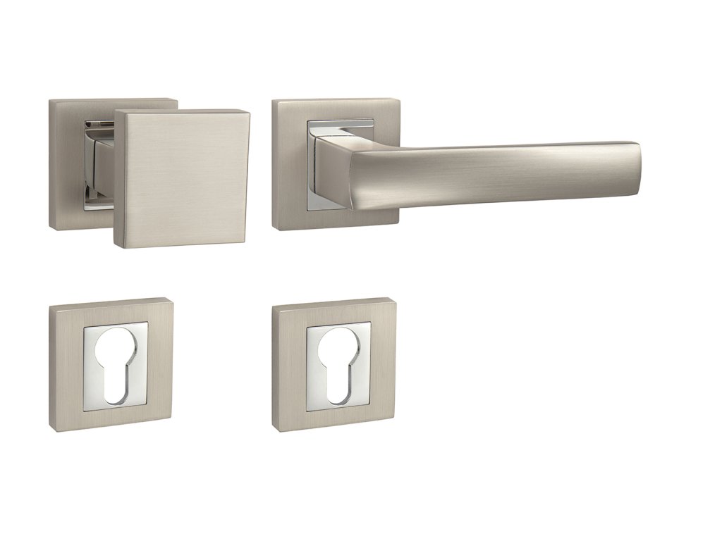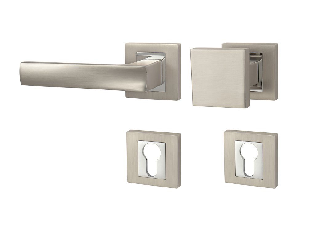 Rozetová kľučka na interiérové dvere s hranatou rozetou je vyrobená odlievaním z kvalitných zliatín zinku a hliníka a je povrchovo upravená. Kľučka je povrchovo upravovaná galvanizáciou a vyznačuje sa vysokou odolnosťou proti korózii. Kovanie je testované na 100 000 cyklov.