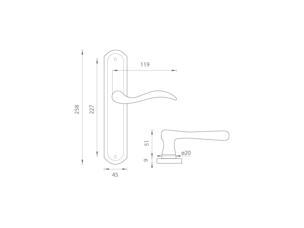 Štítová kľučka na interiérové dvere s oválnym štítom je vyrobená z materiálov vysokej kvality - mosadz a je povrchovo upravená. Kľučka z rady MP line obsahuje vratný mechanizmus.