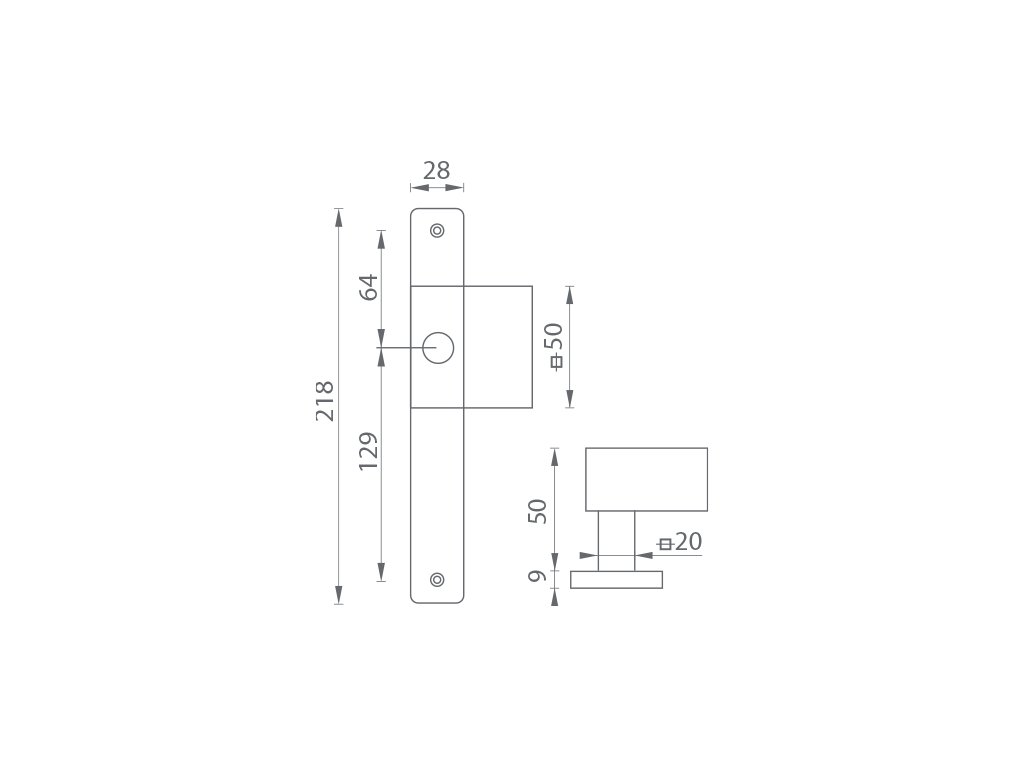Dverové pevné vyosené madlo na úzkom hranatom štíte je vyrobené z vysokokvalitnej nehrdzavejúcej ocele, známej ako nerez a je povrchovo upravené. Madlo pre dvere s úzkym profilom má rozmery 50 mm x 50 mm a úzky hranatý štít má rozmery 28 mm x 218 mm. Madlo použité pri kľučkách na úzkom štíte (SUH) v prevedení madlo/kľučka. Je to len na Vašom rozhodnutí, aký typ otvoru si vyberiete z našej širokej ponuky. V prípade, že sa neviete rozhodnúť, radi Vám poradíme a pomôžeme s výberom.
