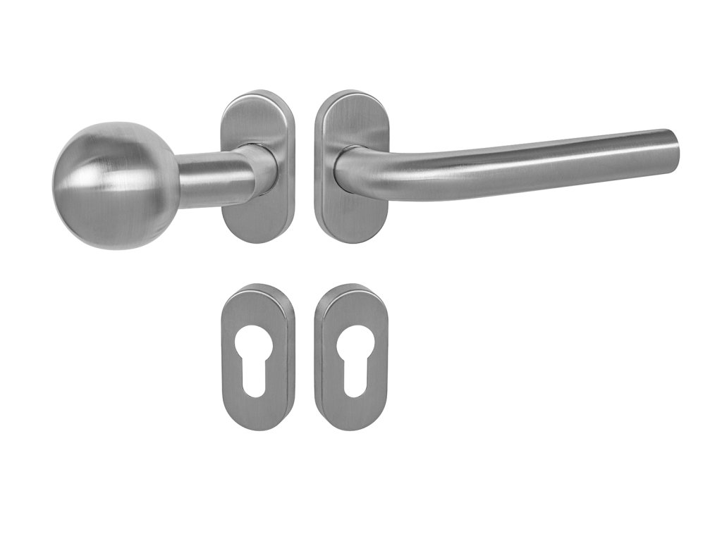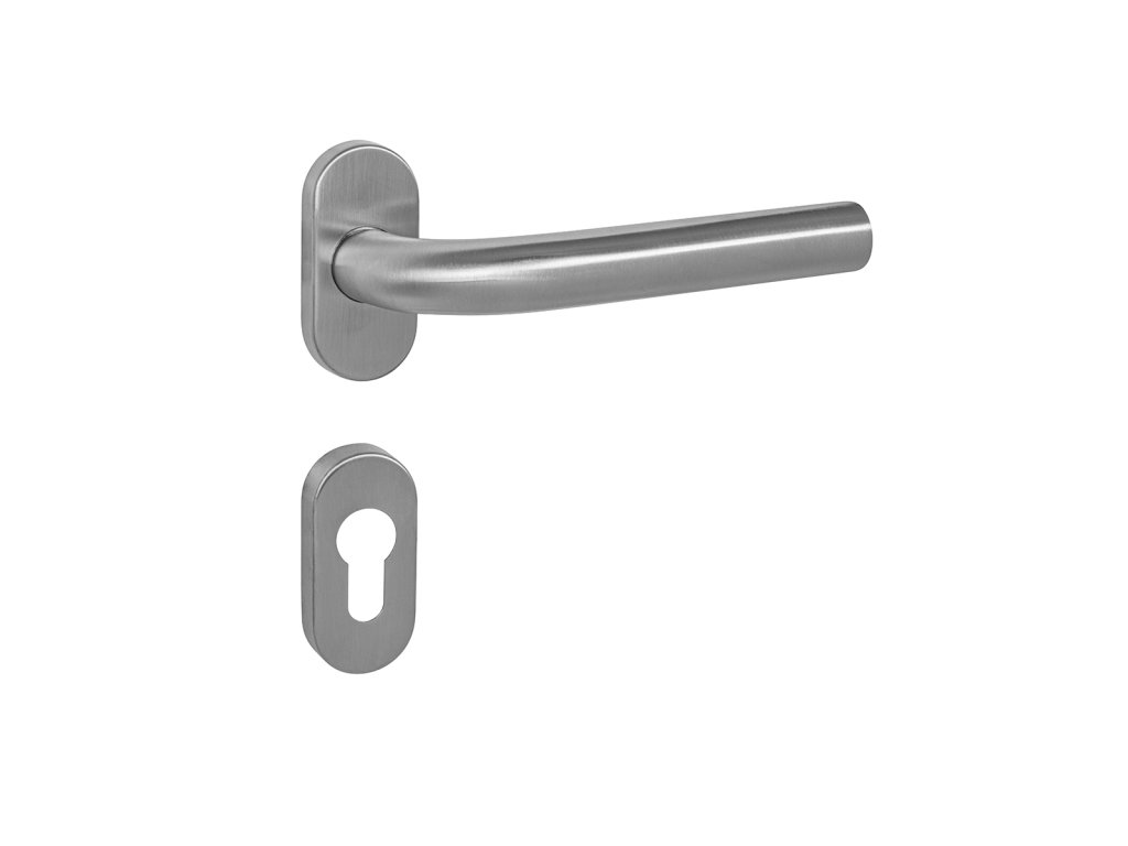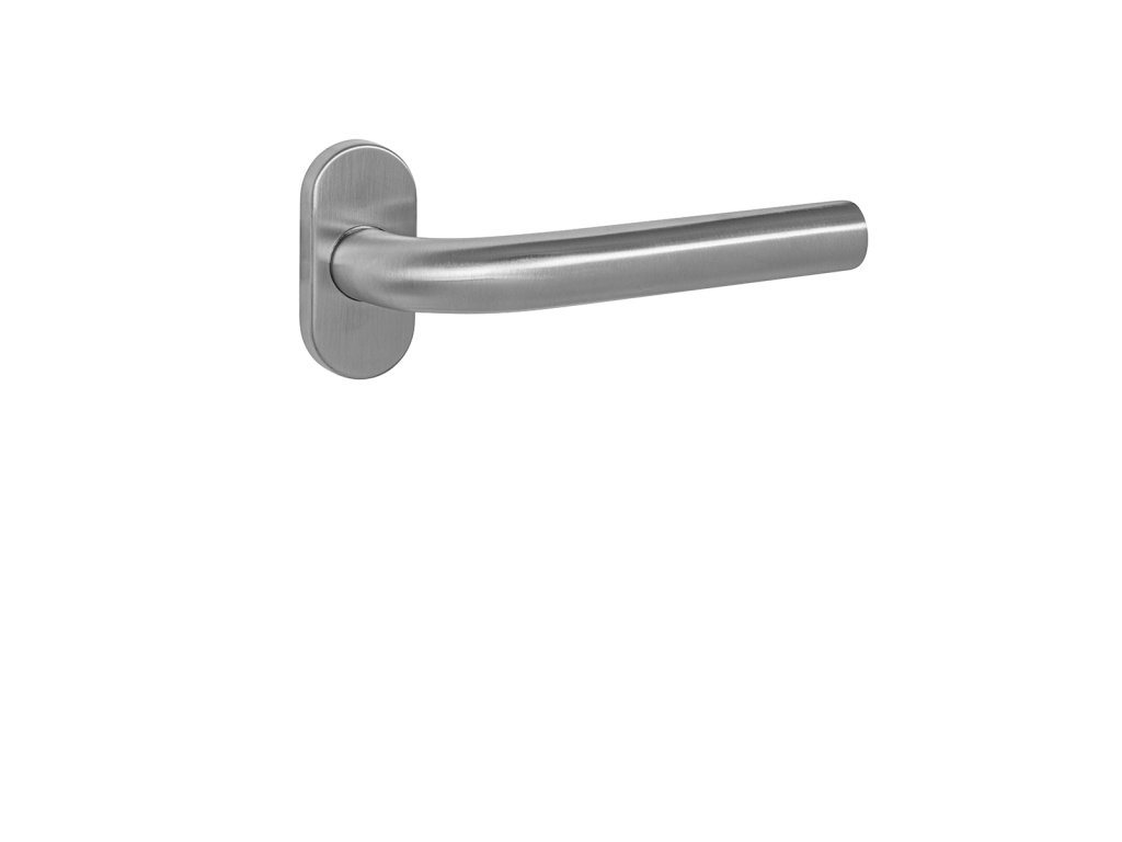 Rozetová kľučka s oválnou úzkou rozetou pre dvere s úzkym profilom (napr.: záhradné bránky a bráničky plotov) je vyrobená z vysokokvalitnej nehrdzavejúcej ocele, známej ako nerez a je povrchovo upravená. Mechanizmus kľučky obsahuje vratnú pružinu.