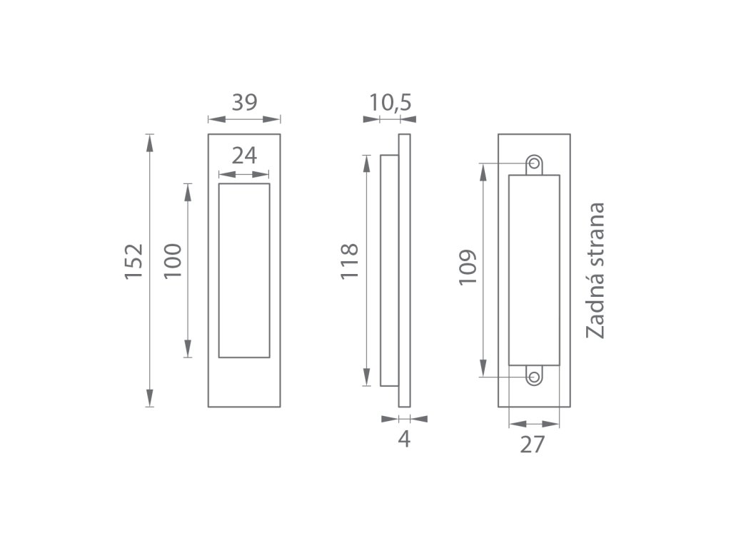 Hranatá mušľa bez otvoru na posuvné dvere je vyrobená z kvalitného materiálu zamak a je povrchovo upravená.