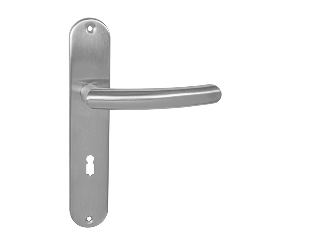 Štítová kľučka na interiérové dvere s oválnym štítom je vyrobená z vysokokvalitnej nehrdzavejúcej ocele, známej ako nerez a je povrchovo upravená. Kľučka z rady MP line obsahuje vratný mechanizmus v puzdre z pozinkovanej ocele.