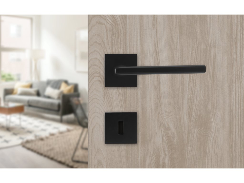 Rozetová kľučka na interiérové dvere s hranatou rozetou je vyrobená z materiálov vysokej kvality - zamak a je povrchovo upravená.