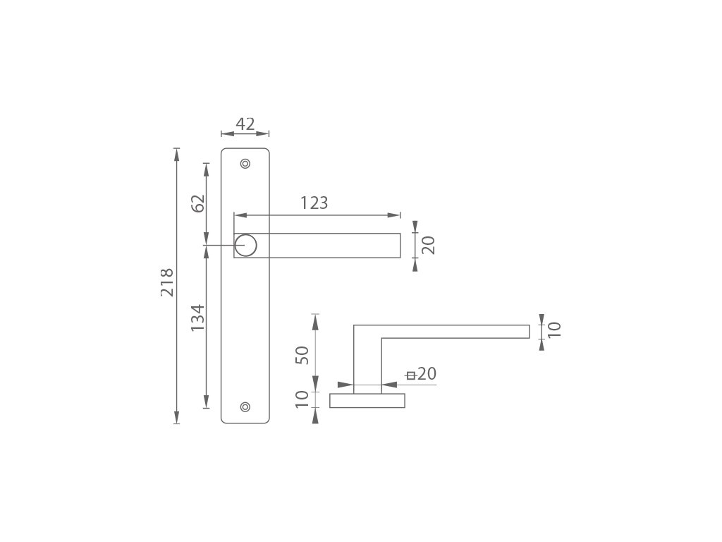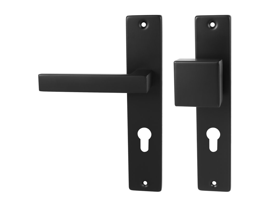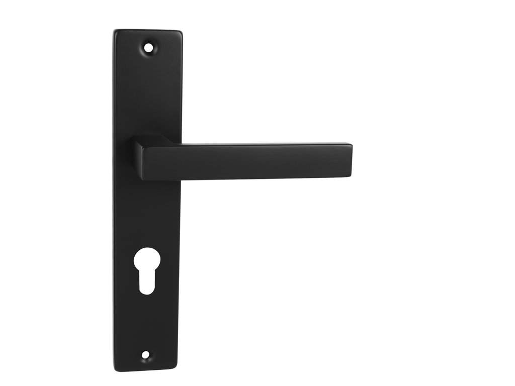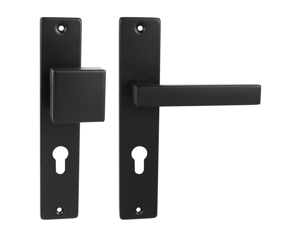 Štítová kľučka na interiérové dvere s hranatým štítom je vyrobená z vysokokvalitnej nehrdzavejúcej ocele, známej ako nerez a je povrchovo upravená.