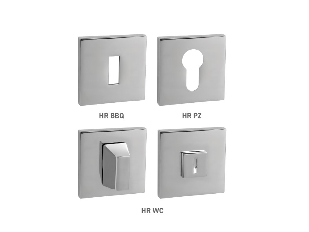 Hranatá rozeta je vyrobená z materiálov vysokej kvality - zamak a je povrchovo upravená. Rozeta má rozmery 53 mm x 53 mm, hrúbku len 6 mm a hranatý otvor pre interiérový kľúč (BBQ), otvor pre cylindrickú vložku (PZ) alebo WC set s vmontovaným kľúčom. Balenie obsahuje 2 kusy roziet (pár) a rozety WC sú v balení ako set.
