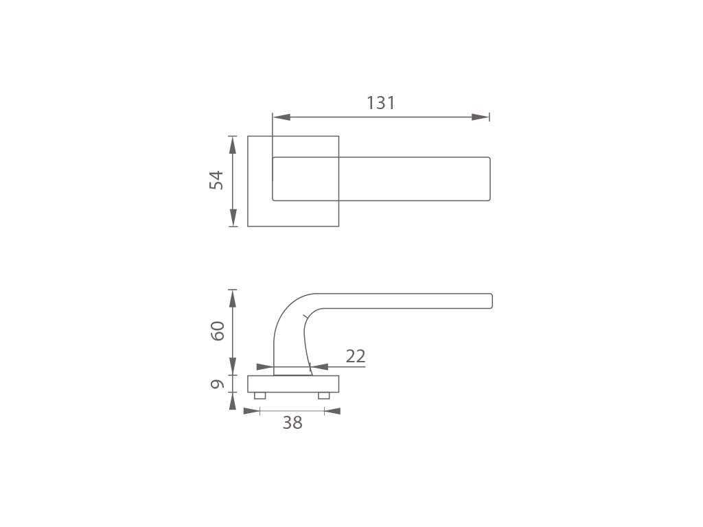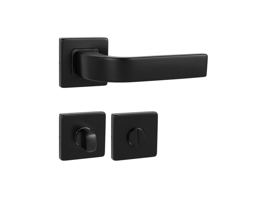 Rozetová kľučka na interiérové dvere s hranatou rozetou je vyrobená z vysokokvalitnej nehrdzavejúcej ocele, známej ako nerez a je povrchovo upravená.