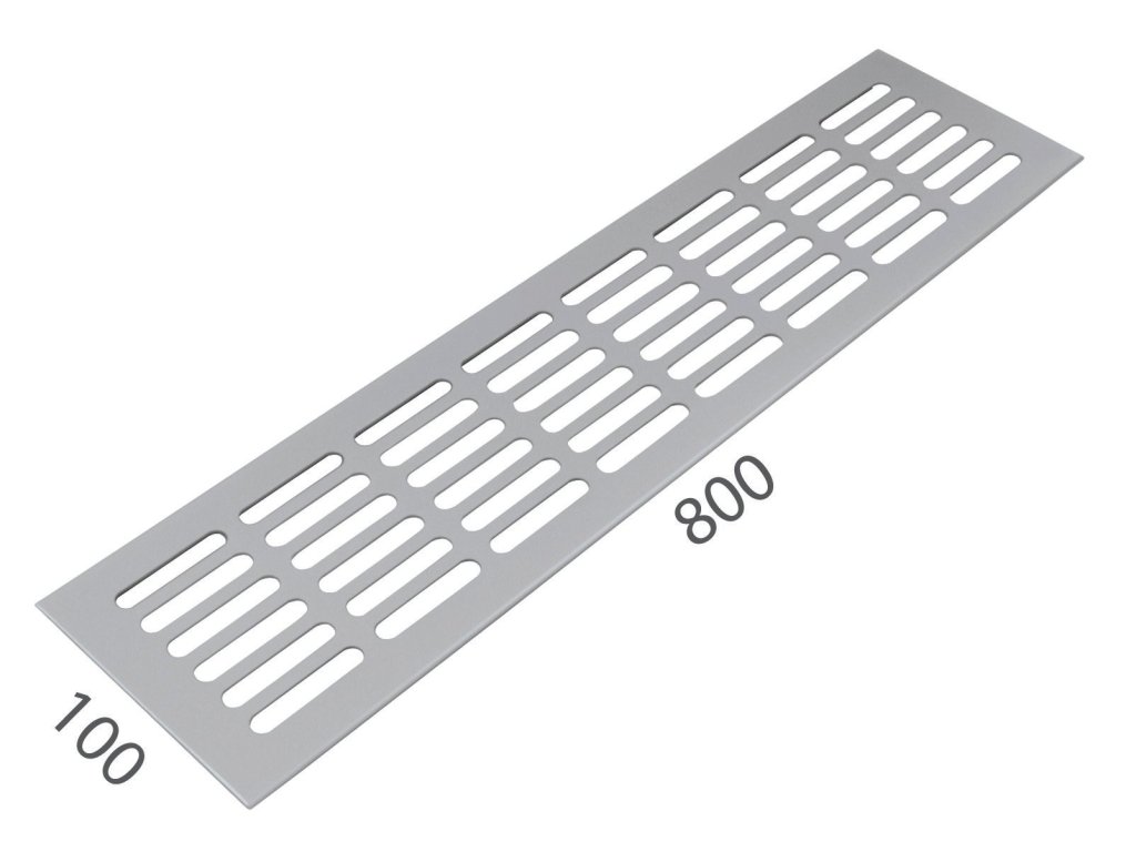 Vetracia mriežka so šírkou 100 mm je vyrobená z hliníka a je povrchovo upravená.VYUŽITIE: na odvetranie vstavaných el. spotrebičov v kuchynských linkách, na kryty radiátorov, na vzduchotechniku, do sadrokartónových priečok, do dverí, atď.