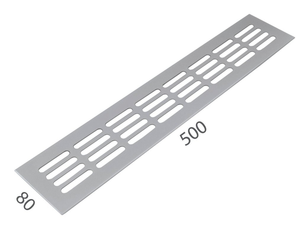 Vetracia mriežka so šírkou 80 mm je vyrobená z hliníka a je povrchovo upravená.VYUŽITIE: na odvetranie vstavaných elektrických spotrebičov v kuchynských linkách, na kryty radiátorov, na vzduchotechniku, do sadrokartónových priečok, do dverí, atď.
