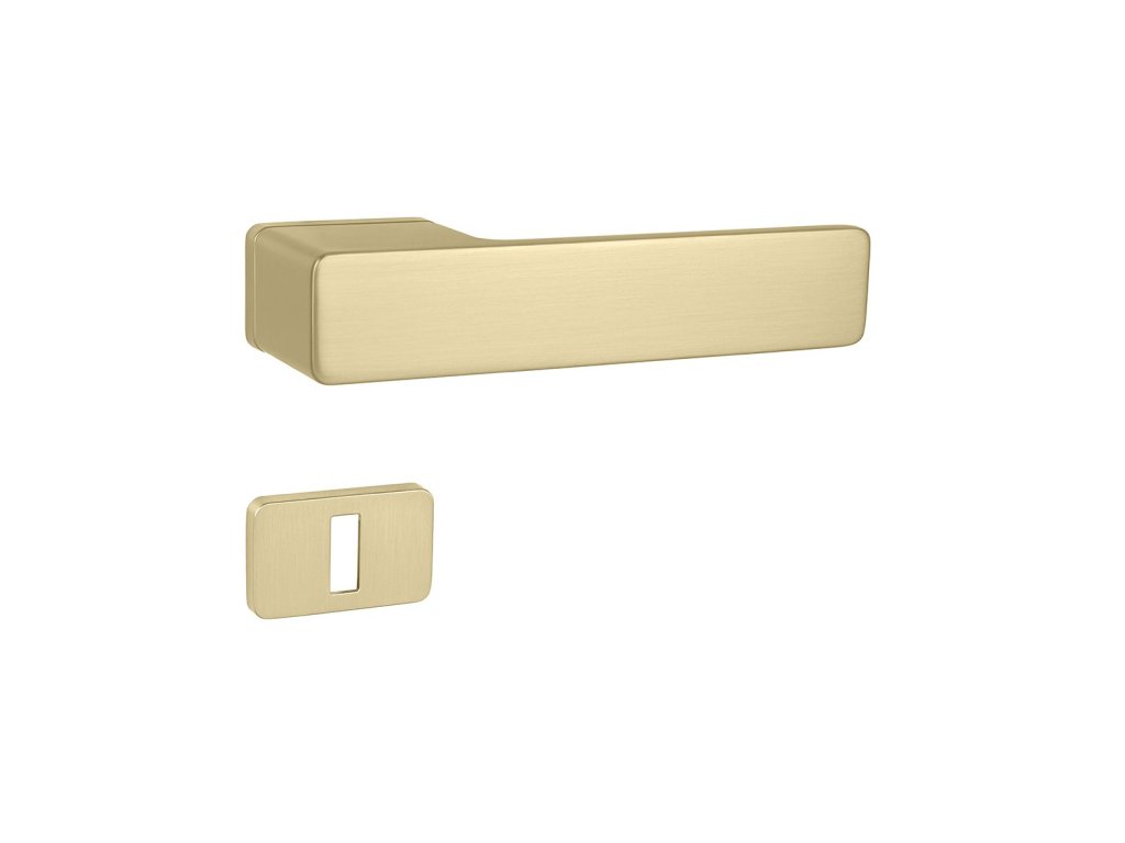 MPK – GRANDERA – RT je rozetová kľučka na interiérové dvere s elegantnou obdĺžnikovou rozetou a je vyrobená z kvalitného zamaku. Rozeta je plne integrovaná do dizajnu kľučky, čo podčiarkuje jej moderný vzhľad.