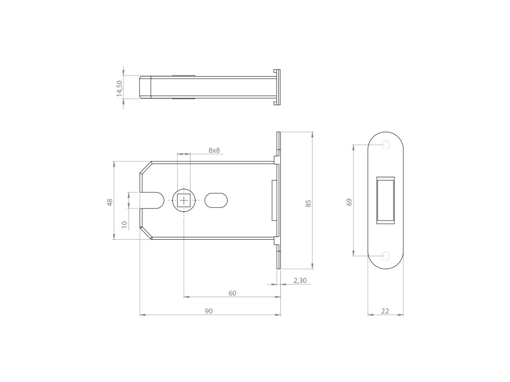 Magnetický zámok je určený pre bezfalcové interiérové dvere, pre kľučky bez spodnej rozety a kľučky s integrovaným uzamykaním. (prevedenie kľučka/kľučka) Montážne skrutky sú prekryté elegantnou farebnou krytkou. Nastaviteľný protiplech k magnetickému zámku je súčasťou balenia.