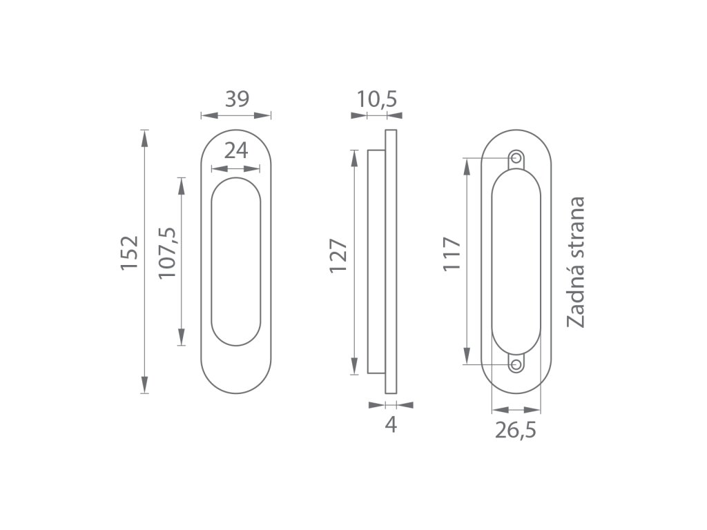 Oválna mušľa bez otvoru na posuvné dvere je vyrobená z kvalitného materiálu zamak a je povrchovo upravená.
