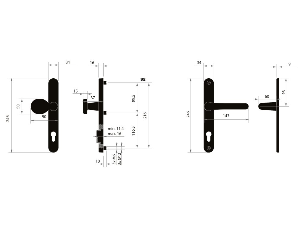 Pri bezpečnostnom kovaní je potrebné poznať vzdialenosť medzi osou kľučky a osou kľúča (rozteč). Štandardná vzdialenosť je 72, 90 alebo 92 mm. Kovanie je štandardom pre hrúbku dverí od 65 do 75 mm.