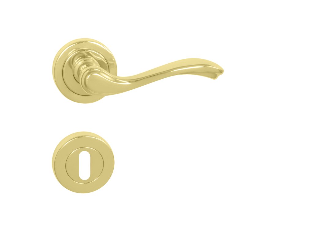Rozetová kľučka na interiérové dvere s okrúhlou rozetou je vyrobená z materiálov vysokej kvality mosadz a je povrchovo upravená.