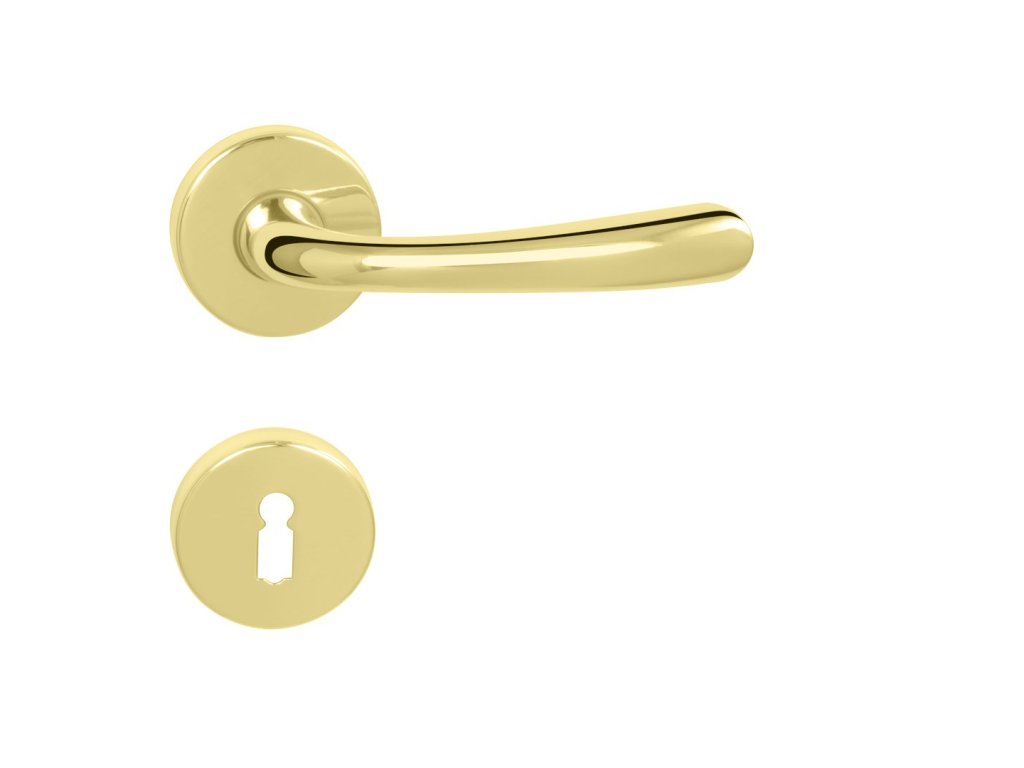 Rozetová kľučka na interiérové dvere s okrúhlou rozetou je vyrobená z materiálov vysokej kvality mosadz a je povrchovo upravená.